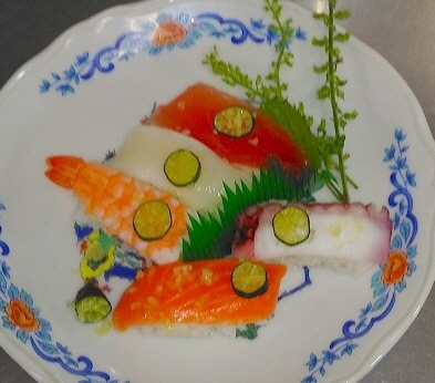 握り寿司に輪切のフィンガーライムを